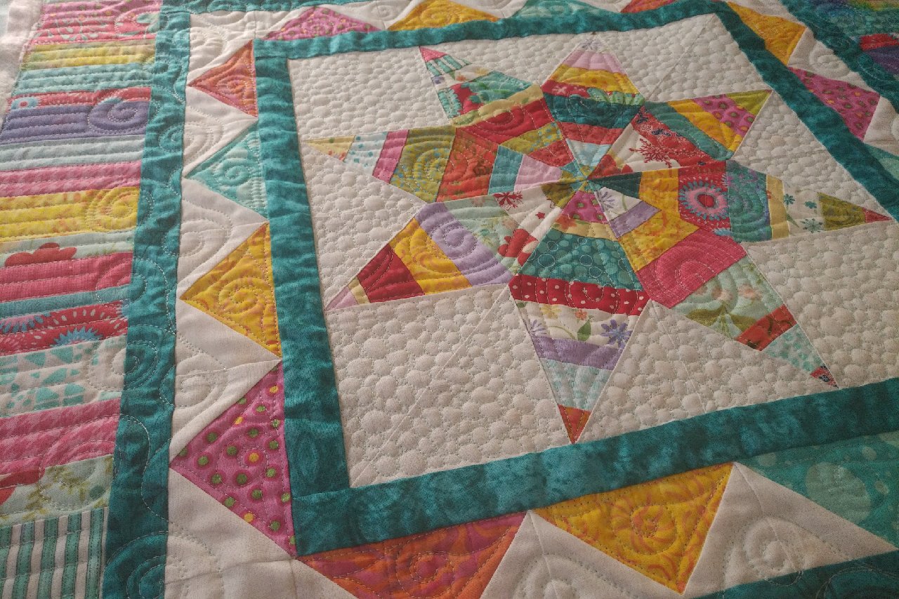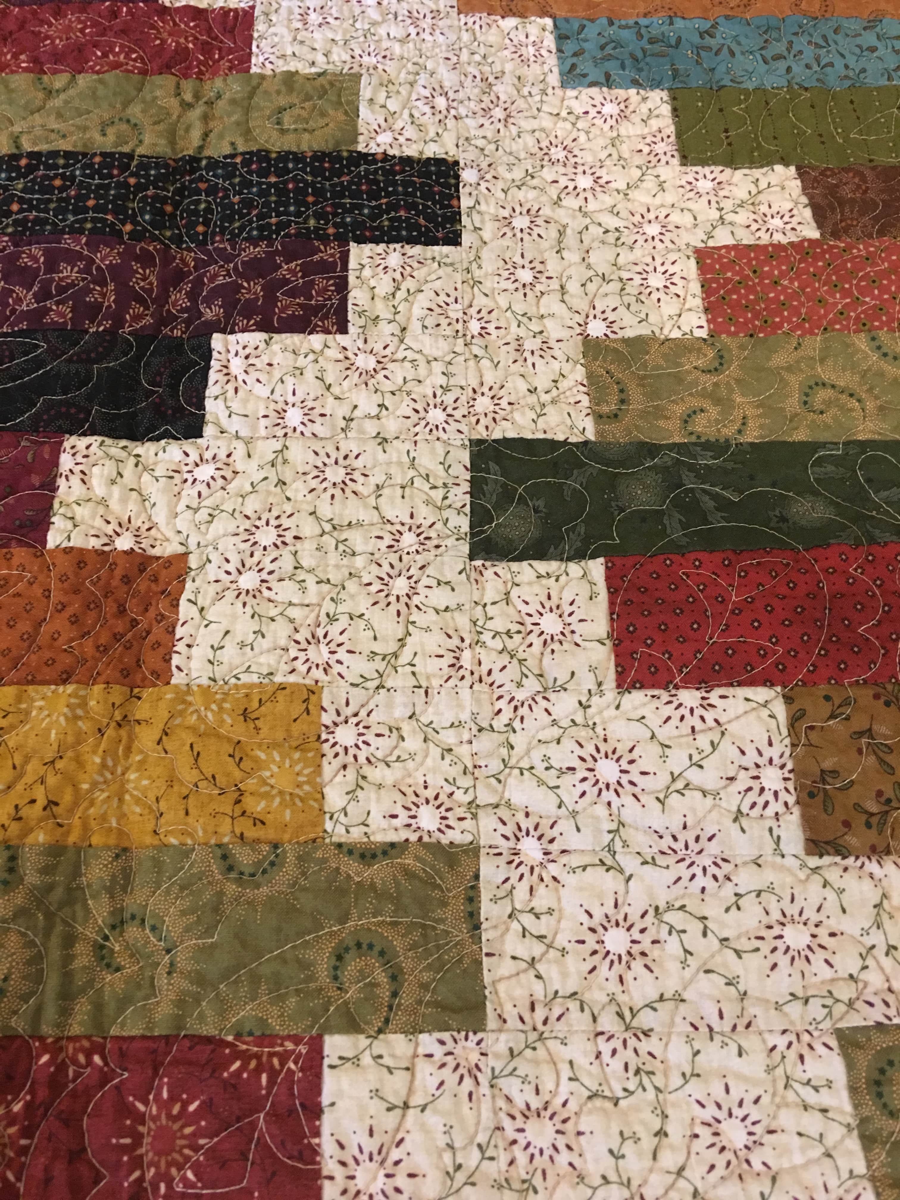 A mixture of ruler work and free-motion quilting