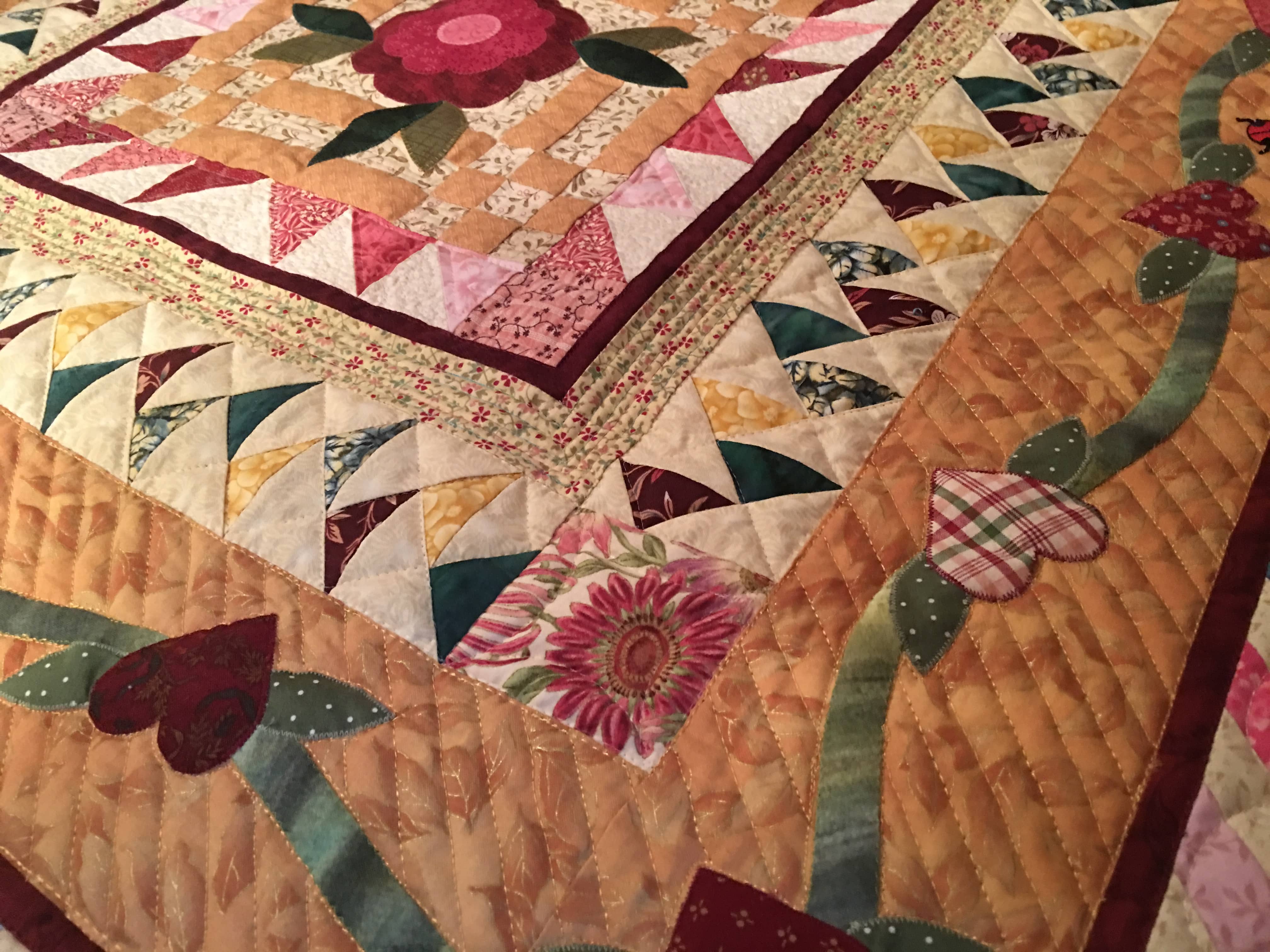 Custom Quilting around Applique